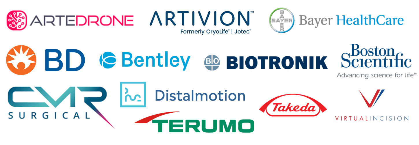 Biotronik • Artivion • Bentley Innomed • Bayer Healthcare • Charite Berlin • Takeda • J&J • Allergan-Botox • Medtronic • CMR Surgical • Distalmotion • CO.DON • Microvention •